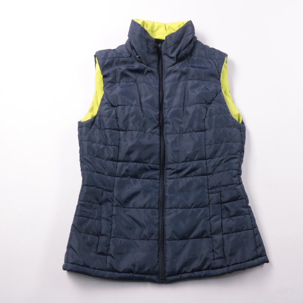 Стёганый жилет Colours of the World тёмно-синего цвета с яркой лимонной подкладкой и застёжкой на молнию. Подойдёт для прогулок и поездок в прохладную погоду, удобно носить поверх худи или свитера. Лёгкий и компактный, хорошо сохраняет тепло без лишнего объёма.