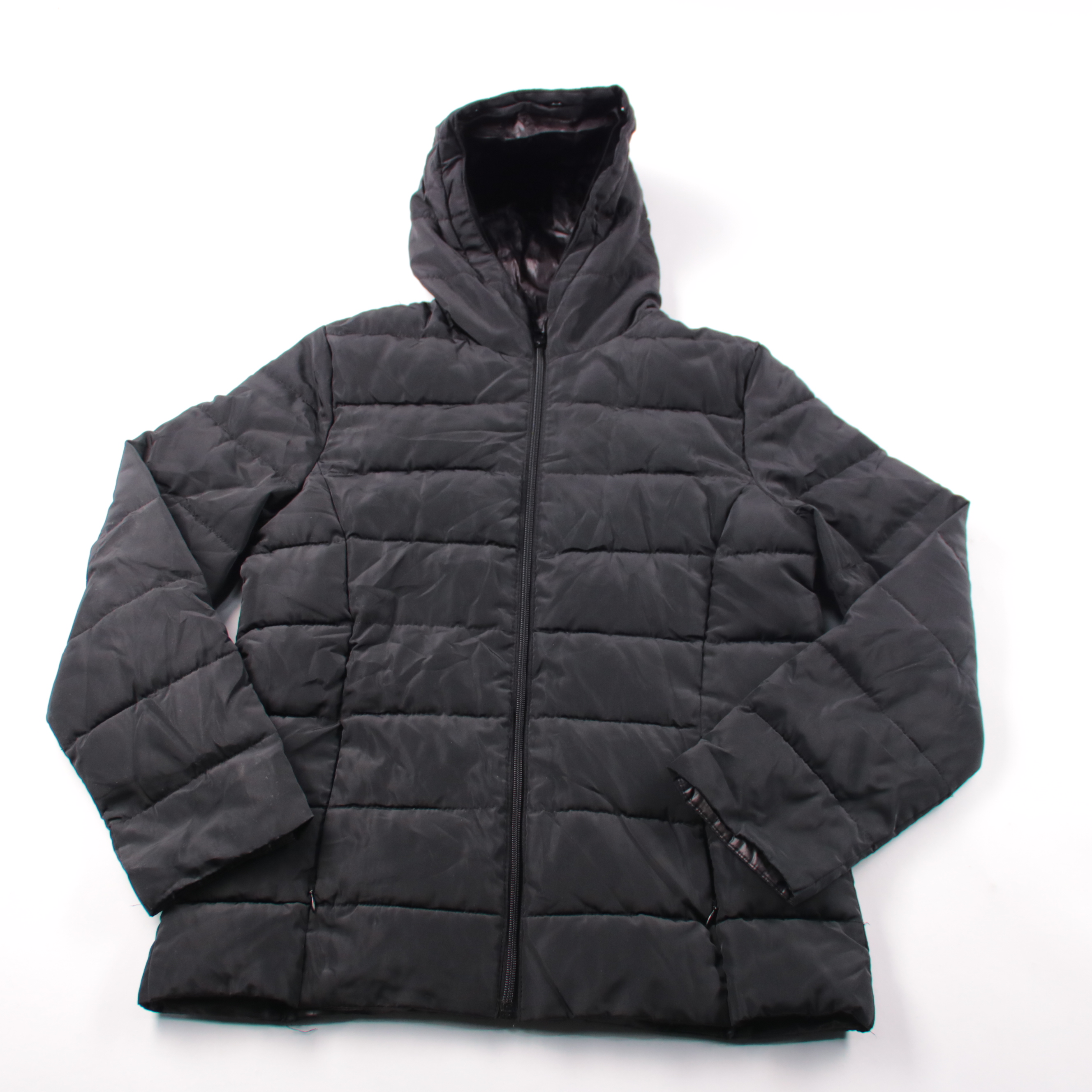 Стёганая зимняя куртка UP2FASHION чёрного цвета с капюшоном и застёжкой на молнию. Подойдёт для повседневной носки в холодную погоду и поездок, хорошо сочетается с джинсами и тёплой обувью. Лёгкая и практичная: синтетический наполнитель быстро сохнет и...