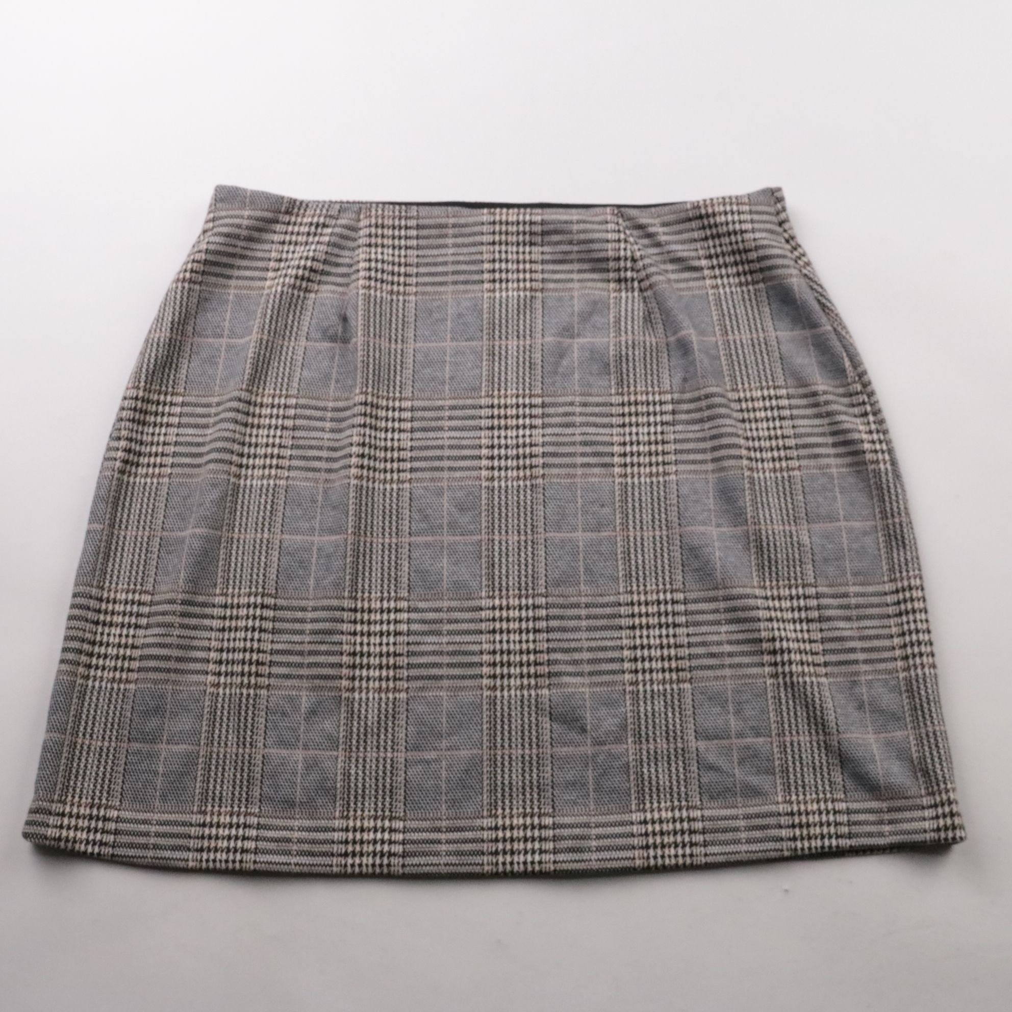 Юбка F&F в серую клетку, прямого кроя и длины мини. Подойдёт для офиса и повседневных образов с водолазкой или рубашкой в прохладную погоду. Практичный материал со слегка тянущейся основой комфортно сидит и не сковывает движения.