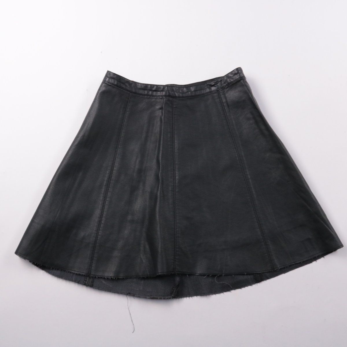 Юбка River Island из экокожи (полиуретан) чёрного цвета, силуэт слегка расклёшенный. Подойдёт для повседневных образов и вечера с ботильонами или кедами. Практичный материал легко протирается и хорошо держит форму.