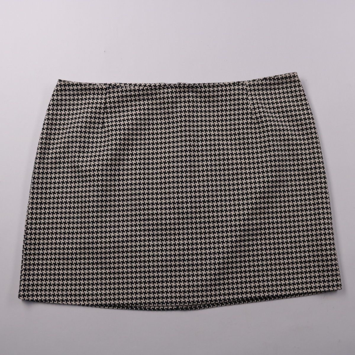 Юбка New Look в чёрно-белую «гусиную лапку», короткая и лаконичного кроя. Подойдёт для офиса и повседневных образов с рубашкой или свитером. Плотная ткань с эластаном хорошо держит форму и чуть тянется.