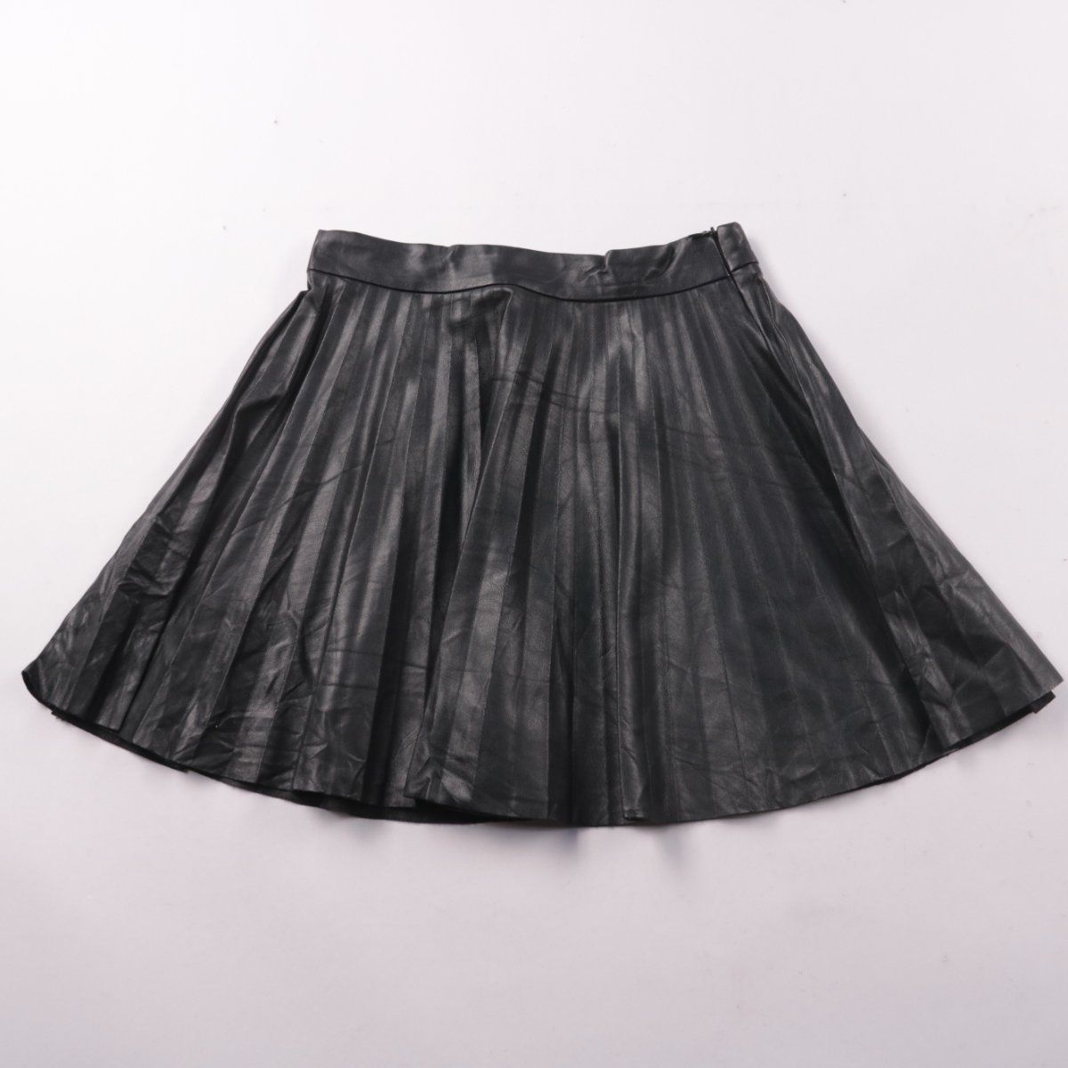 Женская плиссированная юбка из экокожи, без указания бренда. Подойдёт для повседневных образов и выходов в межсезонье, хорошо сочетается с плотными колготками и ботильонами. Практичный материал легко протирать от загрязнений.